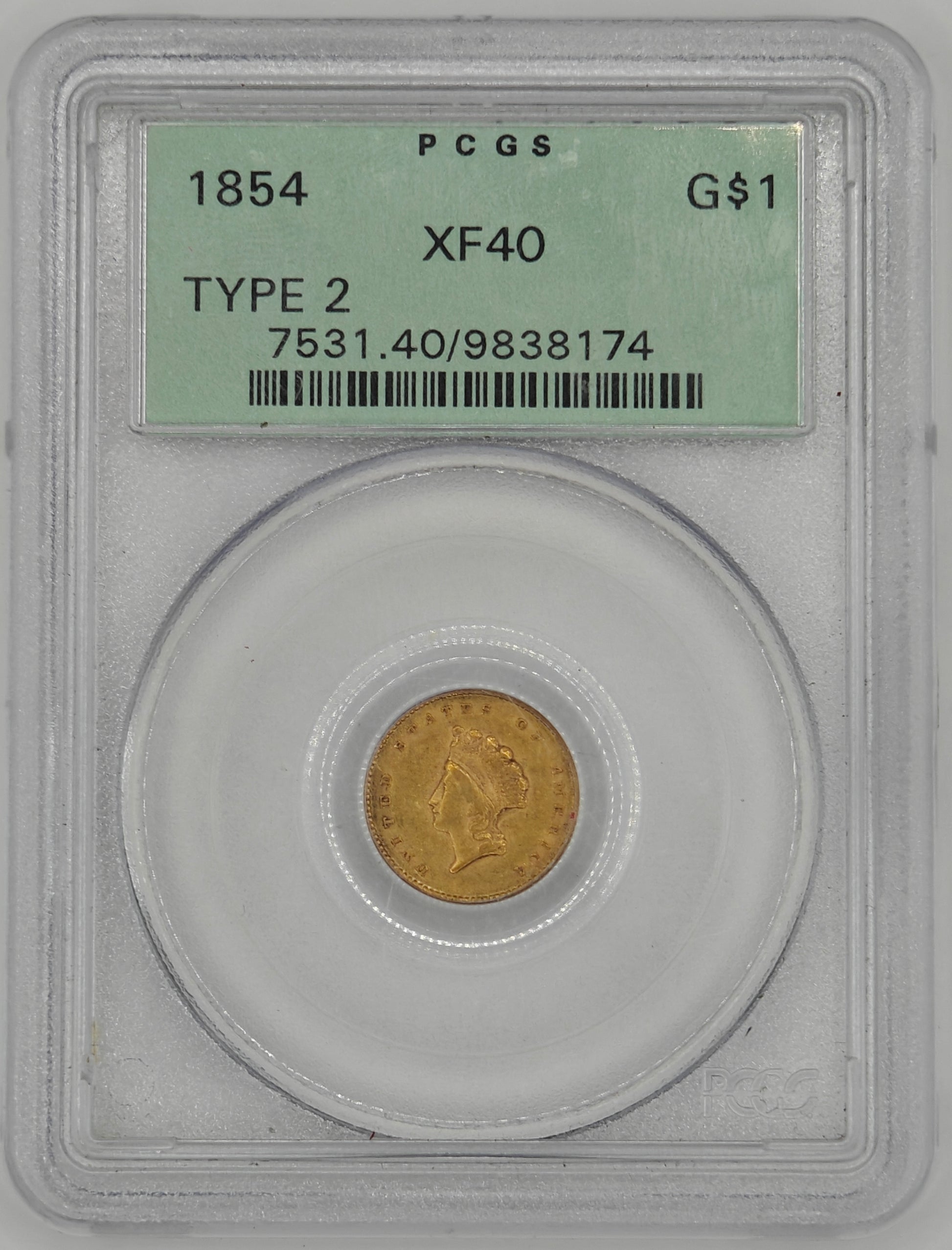 1854 $1 Gold Indian Head XF-40 PCGS (Type-II)