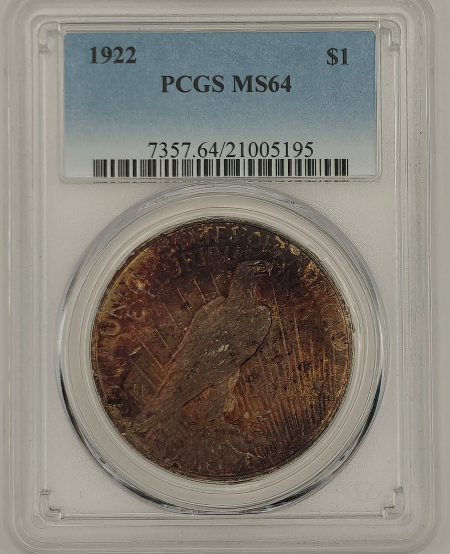 1922 Peace Dollar MS-64 PCGS (Beautiful Toning)
