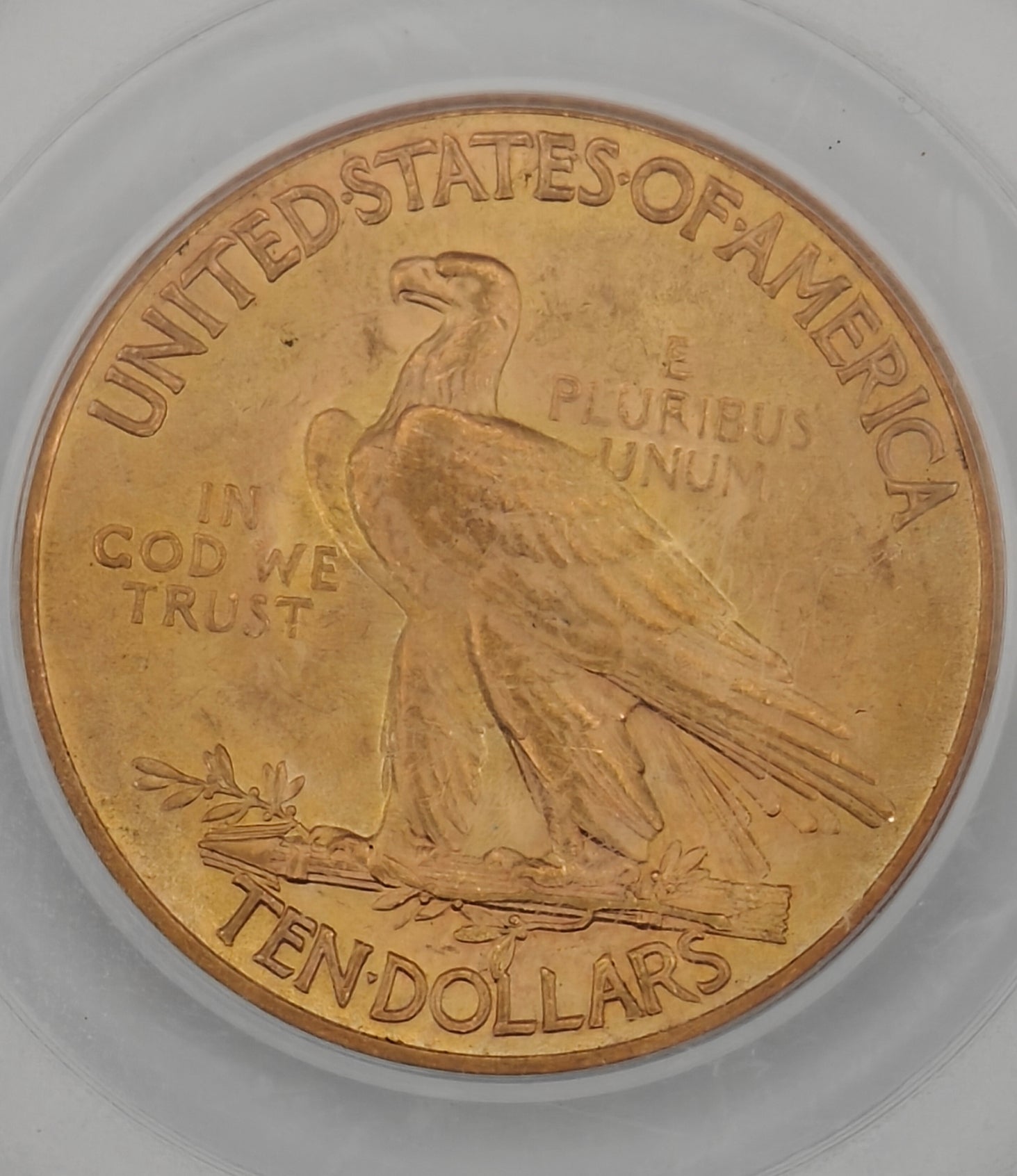 This 1932 $10 Gold Indian Eagle in MS-63 grade from PCGS combines historical significance with high-quality preservation. Struck in Philadelphia, this coin reflects the artistry of its era and offers a valuable addition to any collection or investment portfolio. Its strong grade indicates excellent luster and minimal marks, making it a standout piece for collectors seeking both beauty and authenticity.